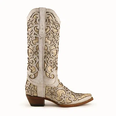 Pre-owned Ladies Distressed White Leather Bliss V-toe Cowboy Boots