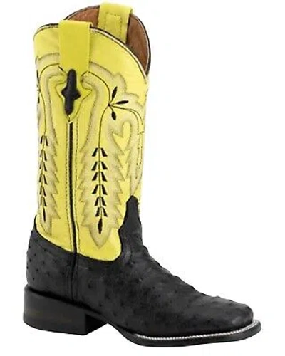 Pre-owned Women's Exotic Full Quill Ostrich Western Boot Broad Square Toe - In Black