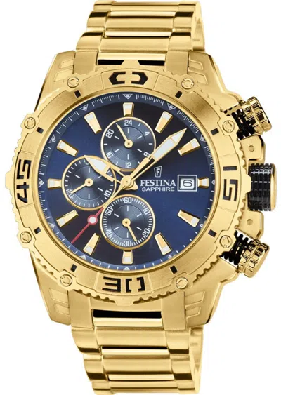 Pre-owned F20524/1 Men's Chrono Bike Bracelet Special Edition Wristwatch In Blue/rose Gold