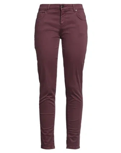 Woman Pants Plum Size 26 Cotton, Elastane In Purple