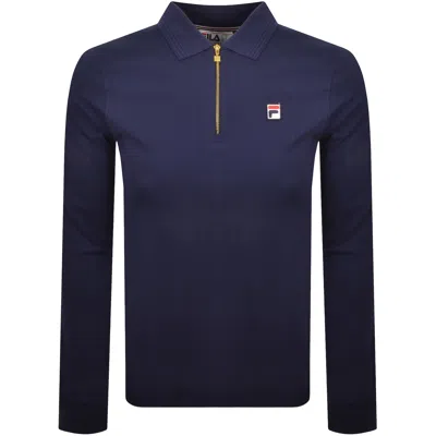Fila Achille Heritage Tape Polo T Shirt Navy In Blue