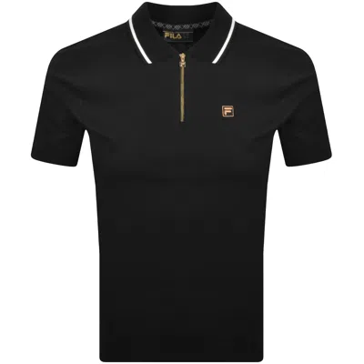 Fila Flat Lock Detail Zip Polo T Shirt Black