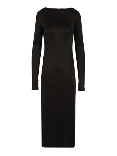 Scooped Back Jersey Dress In Semi Shiny Fabric Dresses Black
