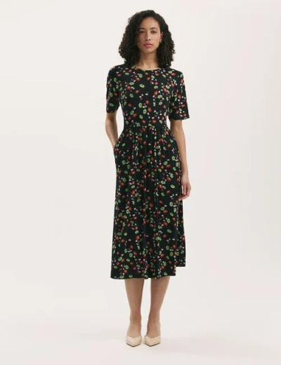 Florian 3/4 Sleeve Round Neck Midi Dress In Black