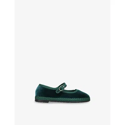 Green Kids' Leonor Cotton-velvet Mary Jane Flats Eur 34 / 2 Uk