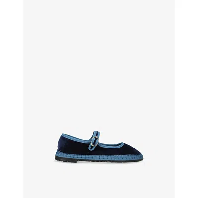 Blue/dark Kids' Molly Cotton-velvet Mary Jane Flats Eur 32 / 13 Uk