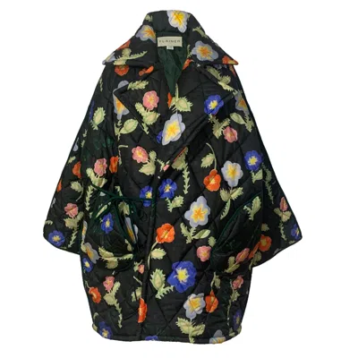 Women's Black Flower Powers Puff Coat