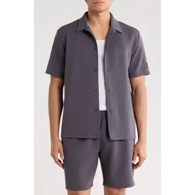Sueded Scuba Short Sleeve Button-up Shirt In Gray