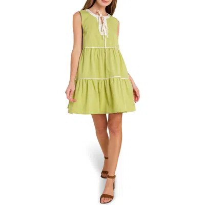Colorblock Tie Front Sleeveless Babydoll Dress In Yellow Green