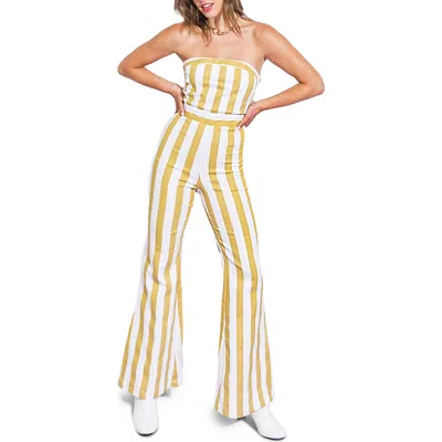 Geometric Floral Stripe Maxi Shirtdress In Yellow