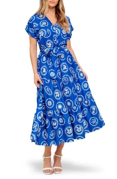 Tie Waist Fit & Flare Midi Dress In Blue