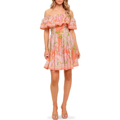 Floral Sleeveless Cotton Blend Twill Dress In Pink