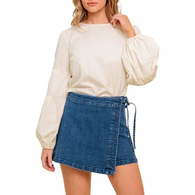 Floral Balloon Sleeve Chambray Midi Dress In Blue