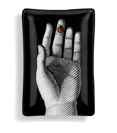 Rectangular Mano Con Coccinella Ashtray In Black