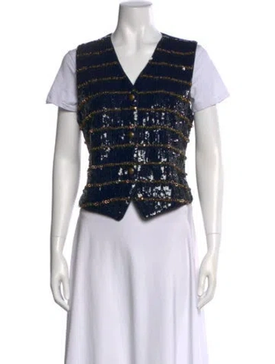 Pre-owned Patterned V-neck Top W/ Tags In Multi