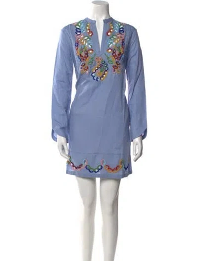 Pre-owned V-neck Mini Dress W/ Tags In Blue