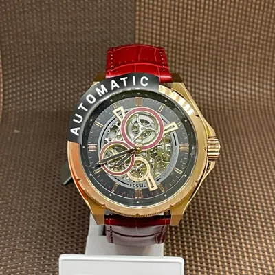 Pre-owned Bq2660 Evanston Automatic Red Leather Rose Gold Case Skeleton Men's Watch
