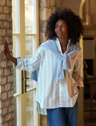Mary Famous Cotton Denim Long Sleeve Shirtdress In Blue