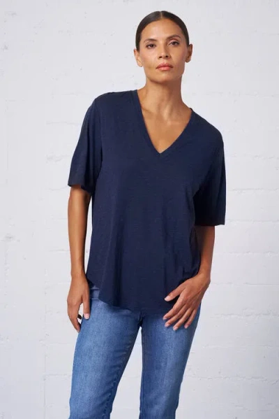 Slub Jersey V-neck Elbow Sleeve Tee In Blue