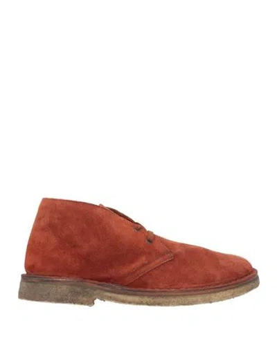 Man Ankle Boots Brown Size 7 Leather In Orange