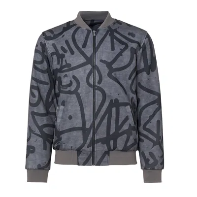 Men's Grey / Black Urban Cipher Bomber Jacket In Blue