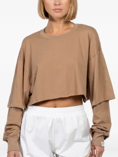 Easy Breeze Double-layered Cropped Top In Brown