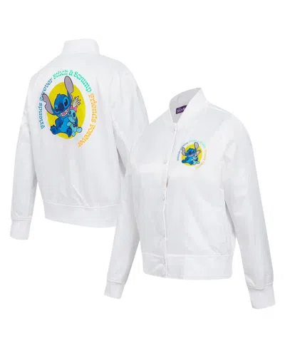 Women's White Lilo And Stitch Scrump Stitch Full-snap Satin Jacket
