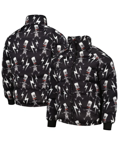 Men's Black The Simpsons Electric Bart Raglan Full-zip Puffer Jacket