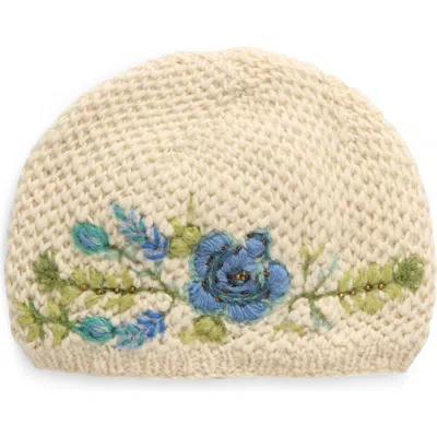 Tilly Floral Embroidered Wool Knit Hat In Neutral