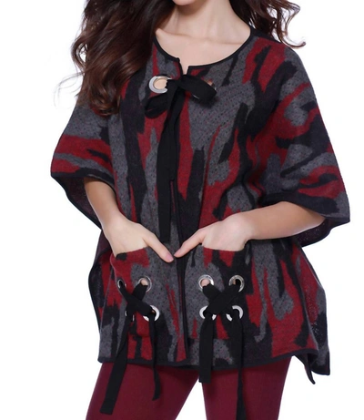 Zip Cowl Neck Heart Poncho In Black/rose In Multi