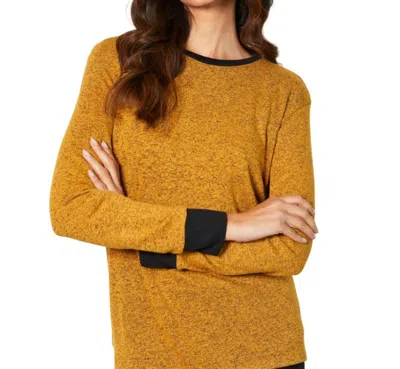 Tie Dye Crew Top With Stripe In Suede In Brown