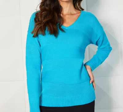 Long Sleeve V-neck Top In Turquoise In Blue