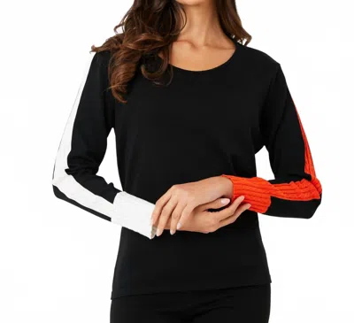 Braided Sleeve Scoop Neck Top In Black / Coral