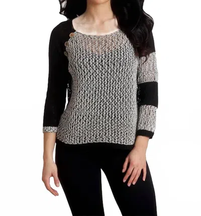 Crochet Three Quarter Sleeve Top In Black Frost In Gray