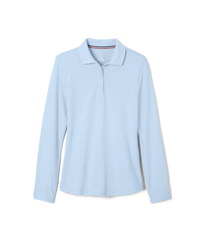 Little Girls Long Sleeve Interlock Knit Polo With Picot Collar In Blue