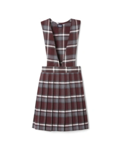 Kids' Little Girls V-neck Pleated Plaid Jumper In Burgundy Plaid