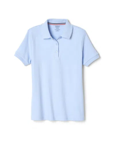 Kids' Big Girls Short Sleeve Picot Collar Interlock Polo Shirt In Blue