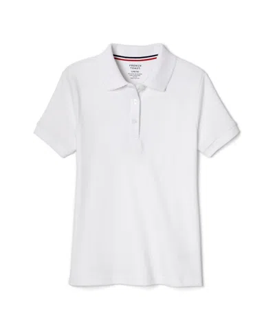 Kids' Big Girls Short Sleeve Picot Collar Interlock Polo Shirt In White
