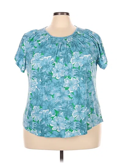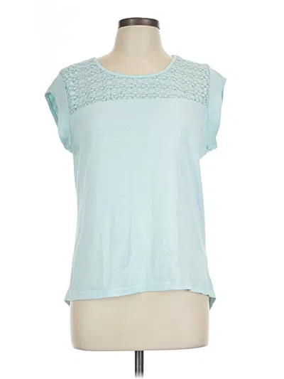 Pre-owned Short Sleeve Top Teal Scoop Neck Tops In Blue