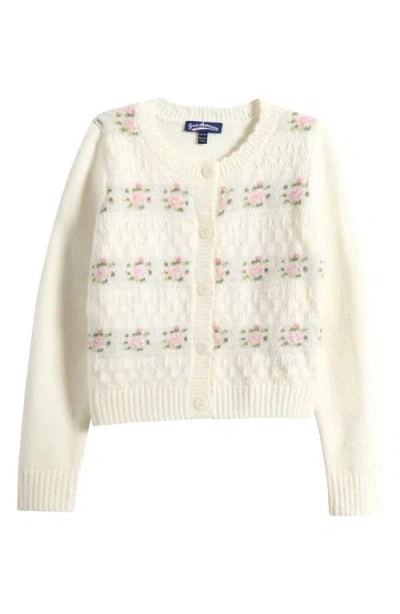 Kids' Floral Stripe Pointelle Cardigan In White