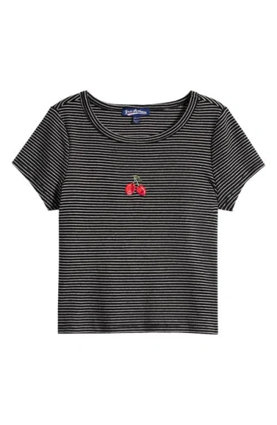 Kids' Stripe Cherry Embroidered Cotton T-shirt In Black