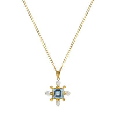 Blue Topaz Cross Necklace In Blue/gold