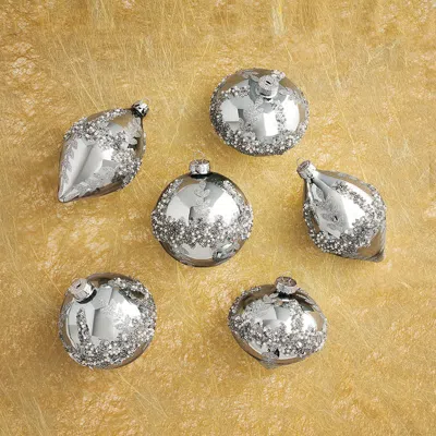 Set Of 6 Snowy Seaside Icy Embellished Ornaments