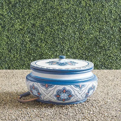 Bordered Fronds Indoor/outdoor Pillow In Blue