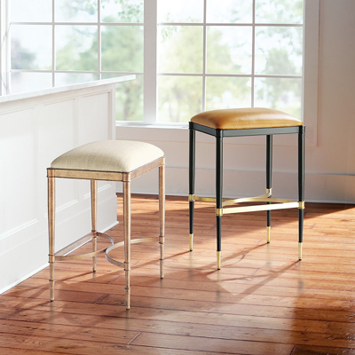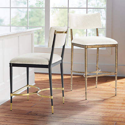 Angelina Bar & Counter Stool In Brass,ivory Linen Barstool