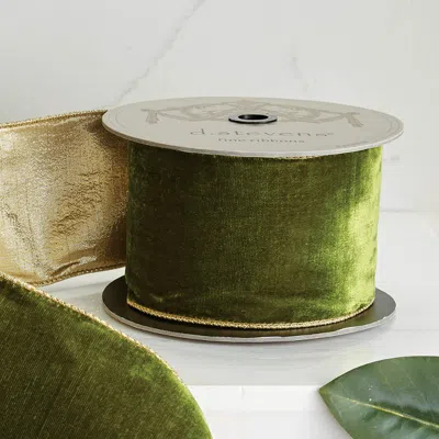 Lush Velvet Ribbon With Light Gold Back In Green