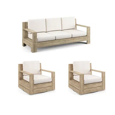 St. Kitts 3-pc. Sofa Swivel Set With Two Swivel Lounge Chairs In Weathered Teak In Neutral