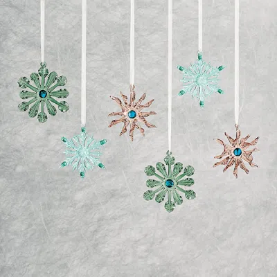 Set Of 6 Snowy Seaside Glass Snowflakes