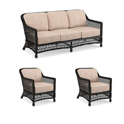 Hampton 3-pc. Sofa Set With Two Lounge Chairs In Black Walnut Wicker