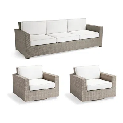 Palermo 3-pc. Sofa Set With Two Swivel Lounge Chairs In Dove Wicker In Gray